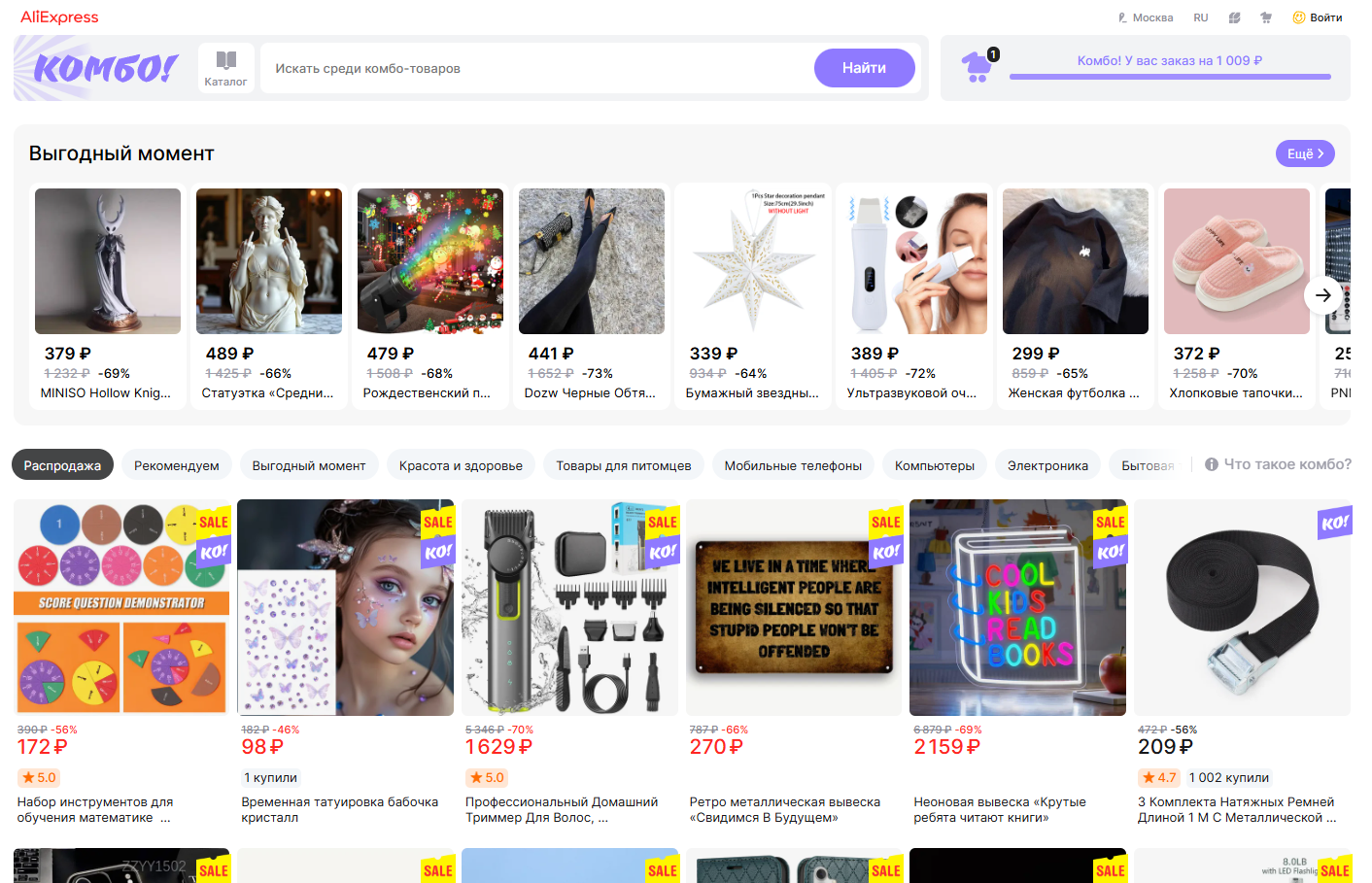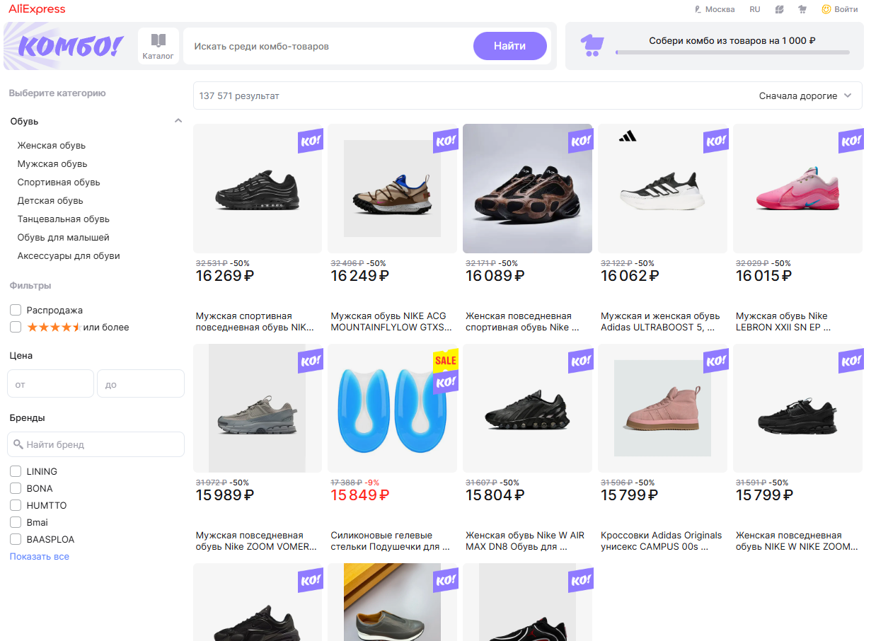 Если подытожить, комбо — это раздел российского Алиэкспресс, в котором действует бесплатная доставка и более низкие цены, чем в общем каталоге, при условии заказа товаров хотя бы на 1000 рублей. В нем можно найти самые разные позиции: от одежды и обуви до автомобильных деталей и бытовых мелочей.