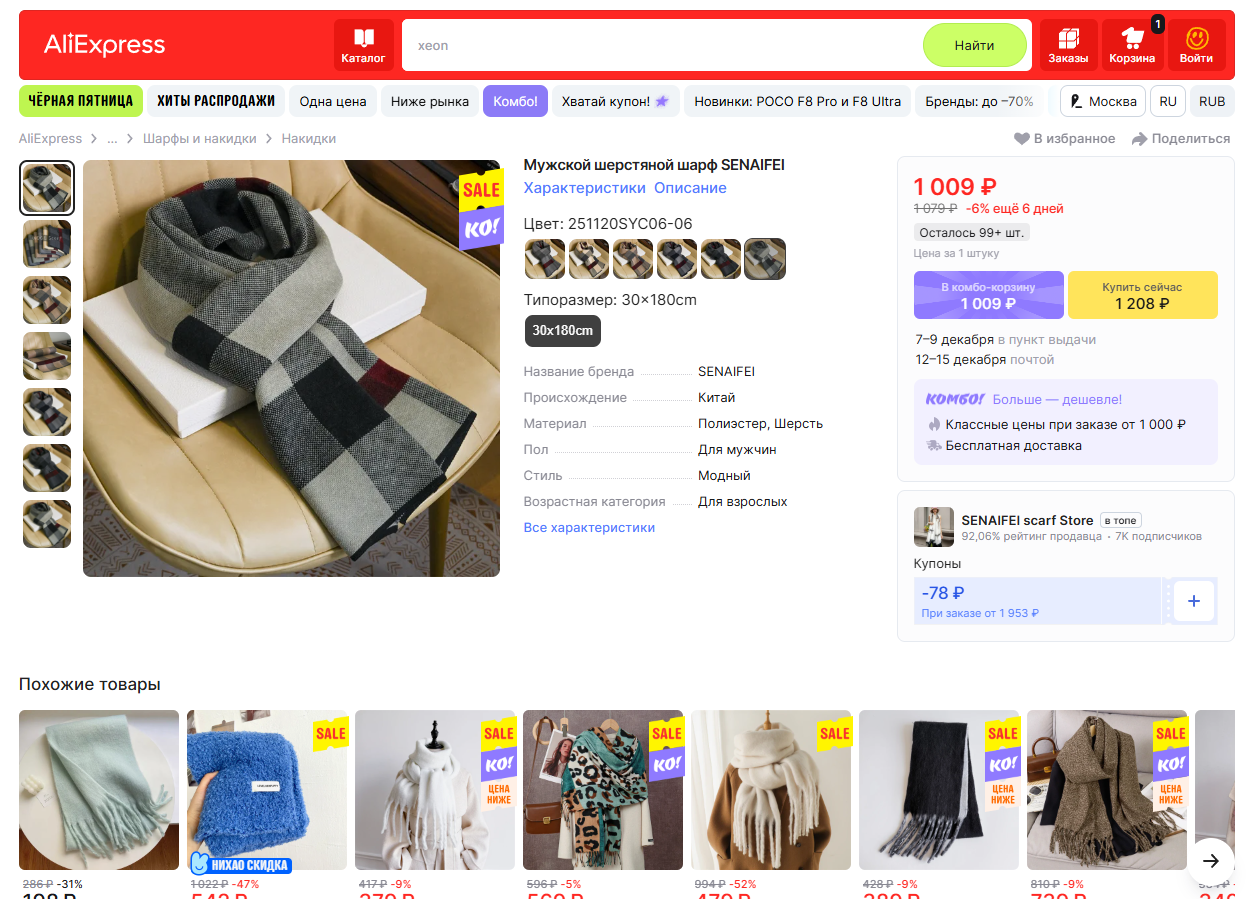 При этом акция проводится только на российском маркетплейсе и только при покупке в рублях с доставкой в Россию. Комбо не действует на международном AliExpress и других площадках или при заказе в Узбекистан и на любые иностранные адреса.